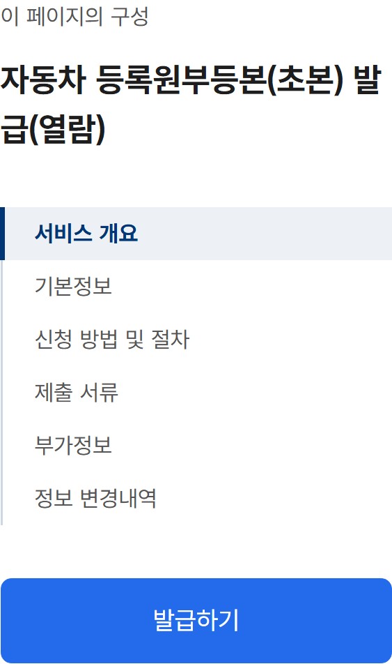 - 자동차등록원부(갑/을) 발급 서비스 클릭